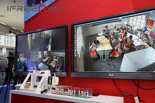 在5月4日至7日的全國基礎(chǔ)教育信息化應(yīng)用展會現(xiàn)場,湘西州緊緊圍繞信息技術(shù)在教育扶貧上的創(chuàng)新,結(jié)合捷視飛通教育互動錄播系統(tǒng)展出了遠程同步教學(xué)、信息化管理、教師信息技術(shù)能力提升等應(yīng)用成果。實時展示了吉首大學(xué)師范學(xué)院附小與湖南花垣縣十八洞村小學(xué)通過互聯(lián)網(wǎng)同步音樂課教學(xué),以及與北京展會現(xiàn)場進行互動交流的情景,整個過程畫質(zhì)高清、十分穩(wěn)定,一網(wǎng)三地的教學(xué)(交流)活動達到了唇音一致的效果,讓高質(zhì)量的教育資源無阻礙地下沉到偏遠的鄉(xiāng)村地區(qū),促進教育資源朝著大體均衡的方向發(fā)展,也見證了捷視飛通為了教育扶貧付出的實踐行動。另外,捷視飛通利用自身技術(shù),在互聯(lián)網(wǎng)上全程直播展會現(xiàn)場,讓場外的人也能實時觀看展會。