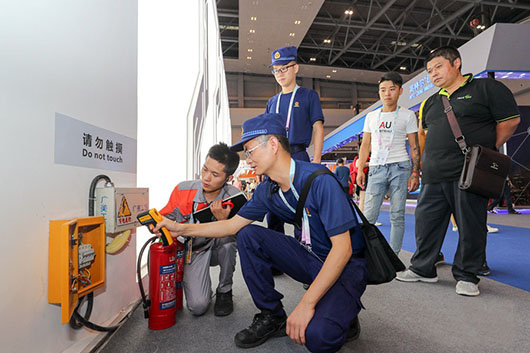 在正常情況下,現(xiàn)場(chǎng)指揮中心在各個(gè)環(huán)節(jié)都可以通過視頻點(diǎn)名查勤,實(shí)現(xiàn)實(shí)時(shí)互聯(lián)互通。根據(jù)實(shí)際情況,整個(gè)消防安全保障工作主要分為三個(gè)階段:在核心展區(qū)前期搭展時(shí),各種展臺(tái)物料進(jìn)進(jìn)出出,組織指揮一線執(zhí)勤員排查,保證每一個(gè)展臺(tái)、每一個(gè)角落消防安全合格;開展期間,在龐大的客流中,指揮中心除了定時(shí)與一線執(zhí)勤員視頻通話,還隨時(shí)隨機(jī)視頻抽查一線實(shí)況,保證展會(huì)安全;非開展時(shí)間及撤展時(shí),保證各項(xiàng)消防工作有序進(jìn)行,不松懈。