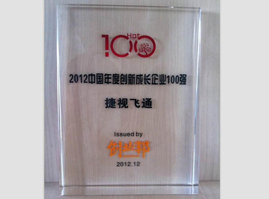 由創(chuàng)業(yè)邦傳媒組織評選的“創(chuàng)業(yè)邦100”中國年度創(chuàng)新成長企業(yè)評選活動,歷時3個月,參選企業(yè)達(dá)5000余家。捷視飛通在創(chuàng)新性和成長性等方面的優(yōu)勢明顯,成功入選2012“創(chuàng)業(yè)邦100”-中國年度創(chuàng)新成長企業(yè)100強(qiáng)。