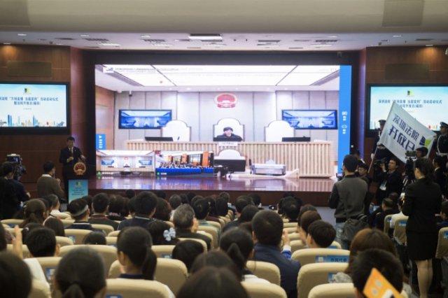 3月25日上午,深圳法院“萬場(chǎng)直播?當(dāng)庭宣判”暨法院開放日活動(dòng)正式啟動(dòng),深圳市委副書記、市政法委書記李華楠,深圳市中級(jí)人民法院黨組書記、院長萬國營,福田區(qū)委副書記、區(qū)長高圣元及50余名市區(qū)人大代表和政協(xié)委員參加活動(dòng)。本次活動(dòng)由深圳福田法院承辦,通過直播、VR體驗(yàn)庭審等很具科技感的方式,以及接地氣、可互動(dòng)的游院活動(dòng),吸引了近千名市民現(xiàn)場(chǎng)參與,近四萬網(wǎng)友在線圍觀。